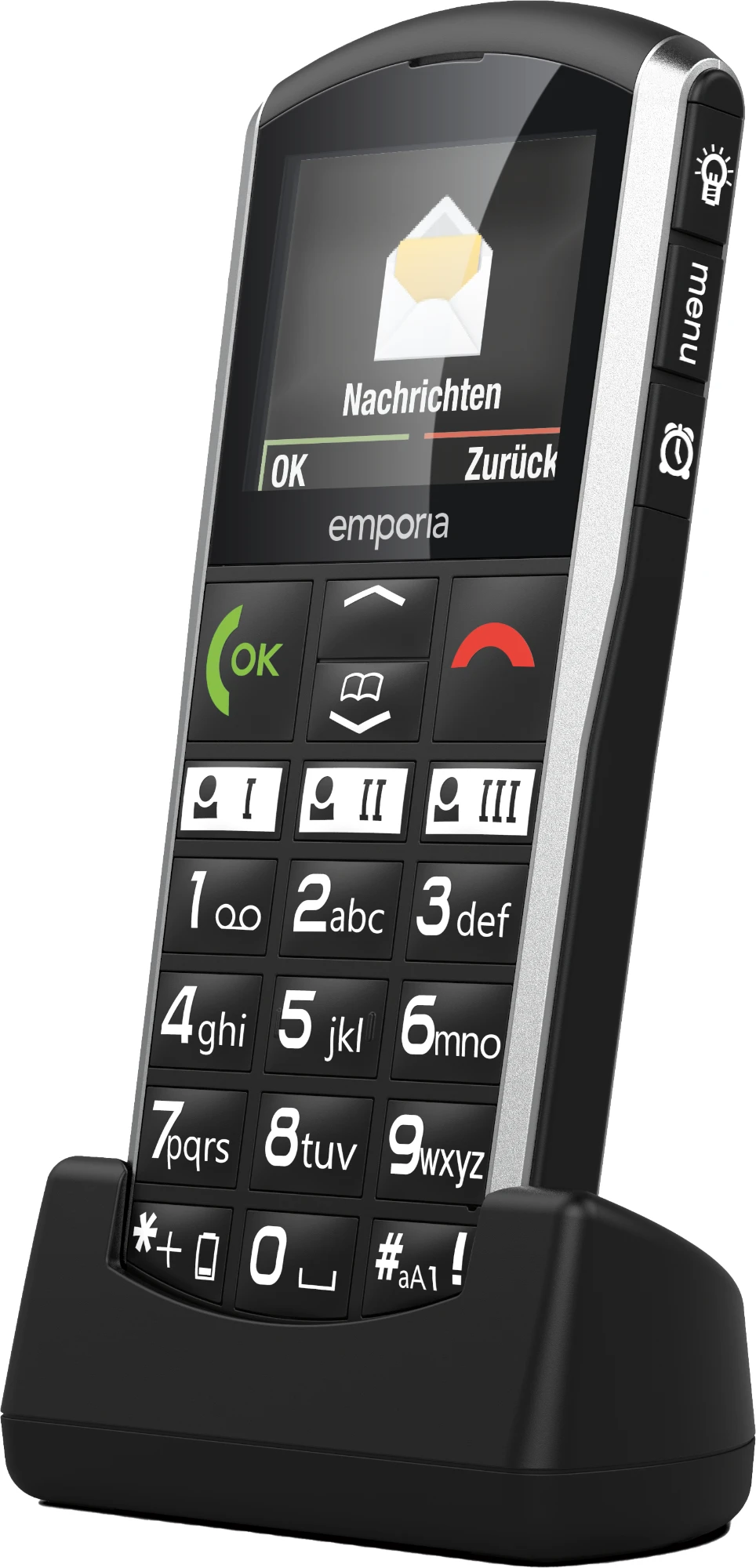 Das SIMPLICITY verzichtet auf jeglichen Schnickschnack. Im Fokus steht das, wofür Telefone ursprünglich erfunden wurden: Das Telefonieren. Das funktioniert aller bestens dank drei Schnellwahltasten, einfacher Bedienung, extragroßen Tasten (beleuchtet, erhaben und mit ausgezeichnetem Druckpunkt), individuell verstellbarer Schriftgröße und breitem Bildschirm mit gut lesbarer Schrift.