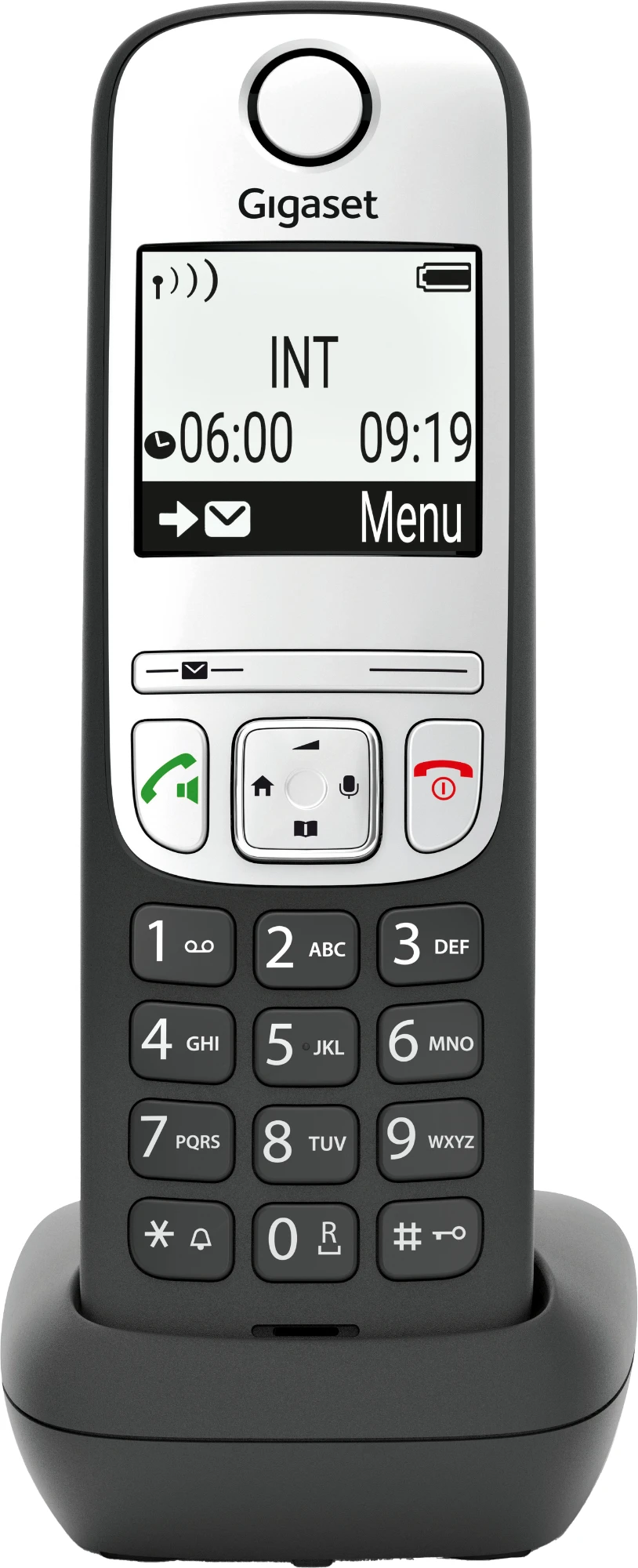 Das Gigaset DESK 600 verfügt über ein dreizeiliges LC-Display mit LED-Hintergrundbeleuchtung, das Rufnummer, Name,Gesprächszeit und VIP-Status (sofern zugeteilt) des Anrufers anzeigt. Der Startbildschirm informiert zudem über das Datum, die Uhrzeit und den Wochentag.