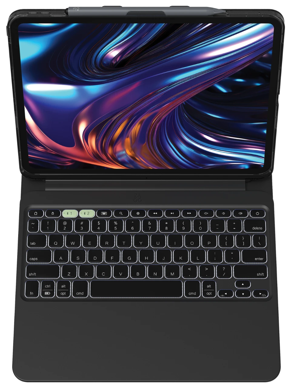 Pro Keys 2 – Die ultimative mobile Workstation für Ihr Tablet. Die Pro Keys 2 Tastatur und das Gehäuse verwandeln Ihr Tablet in eine vielseitige, mobile Workstation. Mit ihrem robusten, leichten Design, das einen Fallschutz von 6,6 Fuß bietet, ist sie für jede Umgebung geeignet. Erleben Sie flüssiges, präzises Tippen mit hintergrundbeleuchteten Tasten im Laptop-Stil, plus eine abnehmbare Tastatur und einen verstellbaren Ständer für flexible Nutzung. Eine magnetische Klappe sichert Ihren Stylus und hält das Gehäuse geschlossen. Mit bis zu einem Jahr Lebensdauer der Batterie und automatischer Sleep/Wake-Funktion, um Energie zu sparen, ist Pro Keys 2 für die Produktivität unterwegs konzipiert.